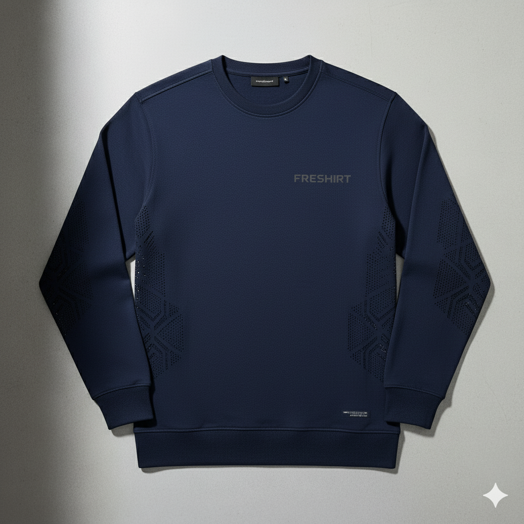 Ne vous fiez pas à son apparence classique. Ce sweat bleu marine cache bien son jeu. Conçu pour ceux qui exigent plus de leurs vêtements, il intègre la technologie de ventilation signature de FRESHIRT.